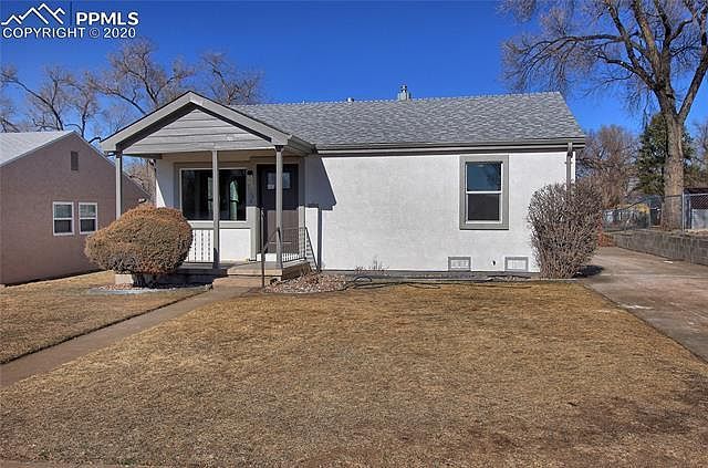 Wow! Complete remodel inside and out! Shows like a new home! Over 1/5 acre with alley access and R2 (duplex) zoning! Add a garage, shop, or shop with another unit above. Plenty of parking for RV's campers, trailers, etc. Great Pikes Peak and mountain views! Outside, notice the new vinyl windows and low-maintenance stucco exterior. Stay comfortable this summer with A/C. A covered front porch for views and covered entry. Newer furnace and water heater. The electrical has been updated as well. Upon entering, you immediately notice the newly refinished hardwood flooring and custom paint. This home has the charm of yesteryear, but the benefits of updates to today's standards! An ALL-NEW kitchen features new white cabinets, hardware, countertops, eating bar, custom sink and high-end faucet, and all new stainless steel appliances! Tile flooring accents this gorgeous kitchen! The updated full bath has custom, high-end finishes with a modern twist, like a "rain" showerhead and custom tile surround! Three bedrooms or two bedrooms and a den/family room provide living options. The basement is finished for a rec room or additional storage. Laundry room is on the main level, conveniently off the kitchen. In the fenced back yard, there is a huge 20'x14' COVERED patio, great for grilling or entertaining. Convenient to downtown amenities!