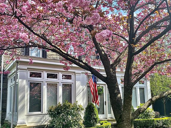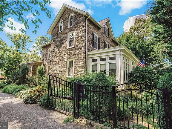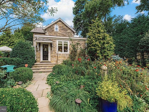 Step into the enchanting realm of this historic 1890 Wissahickon schist farmhouse, where the allure of 19th-century elegance harmoniously melds with contemporary opulence and comfort. Nestled at 714 East Willow Grove Avenue, this three-story detached stone farmhouse, embraced by a fully fenced and gated haven, beckons you to explore its treasures. The primary residence boasts four bedrooms and two and a half baths, a versatile layout that accommodates diverse preferences, adorned with an abundance of natural light and the timeless allure of random-width southern pine floors. Upon entry, a spacious kitchen greet you, featuring a captivating antique island that stands as the centerpiece of this culinary haven. Upgraded GE cafe appliances and new lighting elevate the functionality of the space, while a welcoming gas fireplace infuses warmth into the heart of the home. Adjacent to the kitchen, the initial parlor space unveils itself as an elegant formal dining area. Meanwhile, the main parlor/living room exudes grandeur with expansive windows boasting deep sills, crowned by meticulous molding and antique sconces. An impressive 28-foot sunroom, currently repurposed as a den/playroom, extends the living space, offering a sanctuary that transitions seamlessly to outdoor enjoyment through its magnificent double doors. Enhanced with steam heating, this sunroom invites year-round use. There is also a powder room tucked under the stairs. Enveloped by verdant gardens this property has earned recognition as a Blue Ribbon Winner by the PA Horticultural Society. Crafted by a skilled landscape architect, the exterior design encompasses three distinct seating areas, each inviting you to savor the outdoors in every season. Whether gathering around a table, indulging in fire pit s'mores, relishing the gentle cascade of a water feature, or luxuriating in the embrace of a hot tub, the outdoor spaces embody tranquility. The second floor unveils two exquisitely appointed bedrooms, accompanied by a primary bathroom with double marble sinks, a cast iron double-ended pedestal tub, a separate marble shower enclosed by glass walls, and enhanced by upgraded lighting. Convenient laundry station on this level as well. Ascending to the third floor, two generously sized bedrooms await, one offering custom closets. The upgraded second bathroom enhances functionality. An ideal workspace nook connects the bedrooms. The basement waterproofed to safeguard utilities, reveals a workshop area and ample storage, with a Bilco door granting access to the enchanting gardens. The carriage house, artfully renovated in early 2023, presents a den with a wet bar, a half bath, and a cutting-edge Full Swing Pro Series golf simulator, adaptable for projecting sports games or hosting movie nights for your entertainment pleasure. Ascending spiral steps, the second-floor flex space provides versatility as an office, music room, or guest retreat, complemented by additional storage amenities. There are also historic barn doors that open to allow indoor and outdoor living. Plus a small putting green. Discover this captivating oasis, boasting the convenience of proximity to a commuter train, parks, Wyndmoor's charming shops, and delectable dining establishments. Embark on a journey to experience the harmonious fusion of history and modern luxury at 714 East Willow Grove Avenue—your new haven awaits.