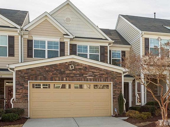 Beautiful 2 car garage townhouse in Olde Carpenter in prime Cary location! Featured 2-story foyer with upgraded hardwood floors throughout 1st floor. Tons of recent updates: Fresh paint inside, brand new carpet, SS appliances, granite countertops with tile backsplash in kitchen. The family room has bank of windows providing plenty of natural light. Master bedroom has trey ceiling, bath with tub & double vanity. Private fenced-in backyard and nice amenities. Mins to H mart, library, tennis and golf club.