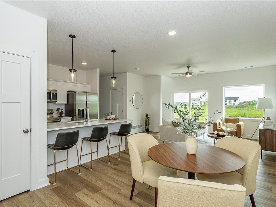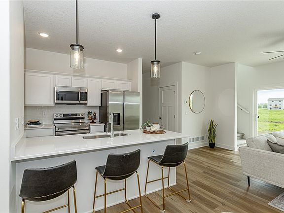 Signature Companies of Iowa - Two-story townhome with 3 Bedrooms, a loft area, 2.5 Bathrooms, and a 2-car OVERSIZED GARAGE. As you enter you are greeted by an open and spacious floor plan, with the main floor boasting 9 ft ceilings and LVP flooring throughout. Enjoy large windows and lots of natural light. The Kitchen is a highlight offering & Large PANTRY, Island, and Beautiful Quartz Countertops. Stainless Steel appliances (including a Refrigerator) The main floor also includes a convenient half bathroom. On the upper level, you'll find 3 large bedrooms. The Primary Bedroom features a walk-in closet and an ensuite bathroom. Additionally, there is a full bathroom, a laundry area with a WASHER and DRYER included, and a LOFT area that can be utilized as an office or flexible space. Leave the irrigation, lawn care, and snow removal to us. Located within minutes of Western Suburbs. Bike Trail located just outside this development Investor-friendly and pet-friendly.All this and tax abatement! Make his a affordable option**Pictures are of the model home, Please note that all the details mentioned have been obtained from the Seller and public records