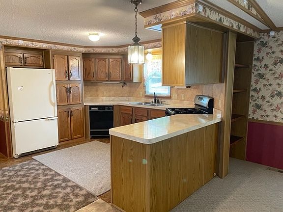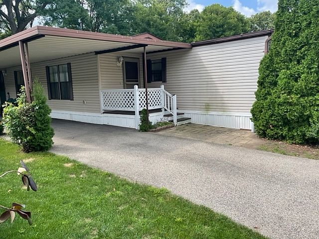 Fantastic location for this spacious two bedroom, two bathroom mobile home in this desirable 55+ community. Large Living room with bay window and ceiling fan. Kitchen with oven/range, refrigerator, dishwasher and breakfast bar. Kitchen opens to Dining room with built in hutch. Master bedroom features walk-in closet and ceiling fan. Master bathroom has a large soaking tub and spacious vanity. Second bedroom has two closets and a ceiling fan. Second bathroom has shower and lovely skylight. Large Laundry room with full sized washer, dryer, washtub and second refrigerator. Combo unit for Heat and A/C. Exterior features include a covered porch, paver front and back patios, carport that holds two cars and a 10 x 10 storage shed. Sold as-is. Lot rent for new buyer is $875/month-Oakbrook Estates requires park approval with application and background check for new buyer. Lot size and room sizes are approximate.