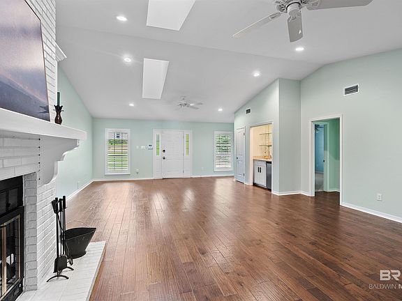Welcome to this charming 3 bedroom, 2 bathroom home in the heart of Downtown Fairhope. This painted white brick house features a front porch swing, perfect for enjoying the beautiful surroundings. Inside, you'll find a split floor plan with tons of living spaces. The living area is complete with hardwood floors, a wet bar with mini-fridge and glass shelves. There is also a wood burning fireplace with a gas starter and blower. The large kitchen and keeping room is perfect for entertaining. The kitchen offers a ton of storage, an island cooktop, instant hot water, newer refrigerator, oven and microwave. The sunroom was added in 2020 and features white tile floors, abundant windows and is the perfect spot to relax in anytime of the day. The primary bedroom boasts two walk-in closets and an en-suite with dual sinks, a soaker tub, and a separate shower. The second bathroom is located off the living area and features a towel warmer, tub and shower with glass doors. Outside, you'll find a two car garage with an additional carport, and sprinkler system. The home also features a tankless hot water heater, whole home generator, termite bond, wood shutters, and Leaf Guard gutter system. Don't miss out on this hidden gem in Downtown Fairhope! Buyer to verify all information during due diligence.