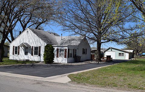 One story recently remodeled on a nice lot at the edge of town with several garages and shops.