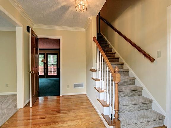 Freshly painted and beautiful-spacious home on wooded lot. Front and back stairway; vaulted ceiling in breakfast area; Super view from kitchen area and family room; Hardwoods thru foyer, dining room, kitchen and breakfast area; bedrooms are spacious with large closets; full daylight basement; lots of house for dollar; well-maintained!