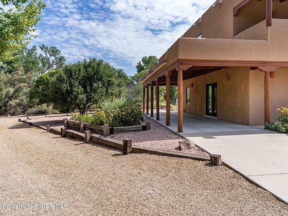 This beautiful 2 story home sits on approximately 2.77 Acres that are well maintained w/irrigation. A lovely home in the Anasazi Subd. that has many amenities & the owners have made several improvements to this property (See Doc in MLS Tab). This home has 4 BRs & the largest BR, is downstairs, could be used as an office, library, extra den, TV room, etc. Walk outside to a covered carport that is attached to the home. The main level of the home has a formal living area & dining room; the den has a 'new' wood burning stove insert that is in the fireplace.Electric shades control the natural light into the den. As you move from the den into the kitchen you will congregate into this warm & inviting room with an island, breakfast bar & dining area that leads to the backyard covered patio area. The covered patio has a Jenn Air natural gas BBQ grill that will stay with the property.The 2nd BR & 2 full-size bathrooms plus the laundry room are on the main level.On the 2nd level of the home, you will find the large MBR that connects to the open MSTR Bathroom & a walk-in closet that has an island for storage. Just outside the MBR is a covered deck to enjoy. Last but not least, the 4th BR is also located upstairs. Included on this property are 4+ garages; a 3-car garage attached to the house & a detached double car garage. This lovely property has expansive yards that are irrigated with ditch access. The backyard is an oasis with multiple gathering areas plus a pond that feeds the irrigation system which is located near to the back of the detached double car garage. Directly from the kitchen, a person can walk outside is a 'new' wooden pavilion plus another smaller pavilion is down the path & both are great for gatherings & entertaining. 2025: New roof and 2 evaporative coolers, 2023; New carpet, new stucco, water heater & more items on Owner's List. Appliances stay and are not warranteed. Pre-approved buyers B4 showing the property. Look for sign on the property.