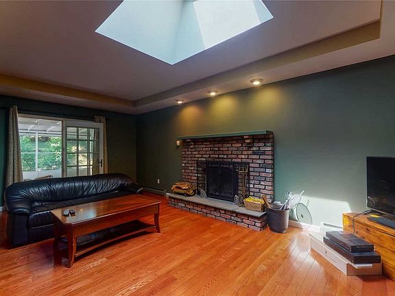 Sprawling Ranch In Desirable Smithtown! Don't Miss This Opportunity To Endlessly Entertain In This Bright and Spacious Home With Vaulted Ceilings, STUNNING Eat In Kitchen With Pantry That Houses Laundry and Outside Entrance. Formal Dining Room, Open Concept Living Room and Cozy Den With Wood Burning Fireplace. Skylights Galore! Sunroom Off the Back Of The House To Help Enjoy the Private Backyard! The Hardwood Throughout The Entire First Floor Is Mahogany and Den Has Stunning Tray Ceilings. Bedrooms Are Spacious With Plenty of Storage and Master Bedroom Is Situated In the Back Of The Home With Master En Suite. Full Basement Has Storage Galore and The Outside Entrance Makes For Many Possibilities!