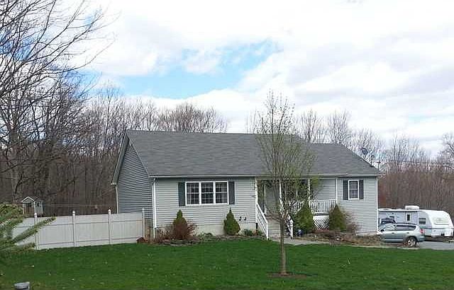 Wonderful Country Ranch on 12 Private Acres. Sitting nicely on a quiet country road, you will enjoy the convenience of one level living plus the versatility of having a finished basement with a den, 4th bedroom and family room. When you first arrive you will notice the covered rocking chair front porch, perfect for a lazy afternoon. Entering the front door you will be greeted with bright airy rooms. The living room is complemented by a 2 story cathedral ceiling, while the eat-in-kitchen includes a charming wood burning stove. The master bedroom has ample closets and a full bathroom. Outside enjoy a 2 tier deck, fenced area and an above-ground pool, and 12+ Acres to do what you please.