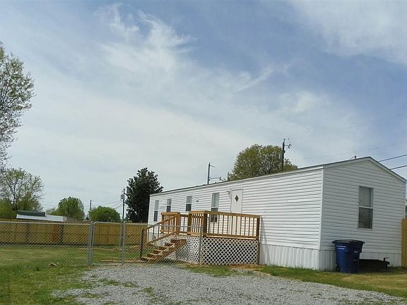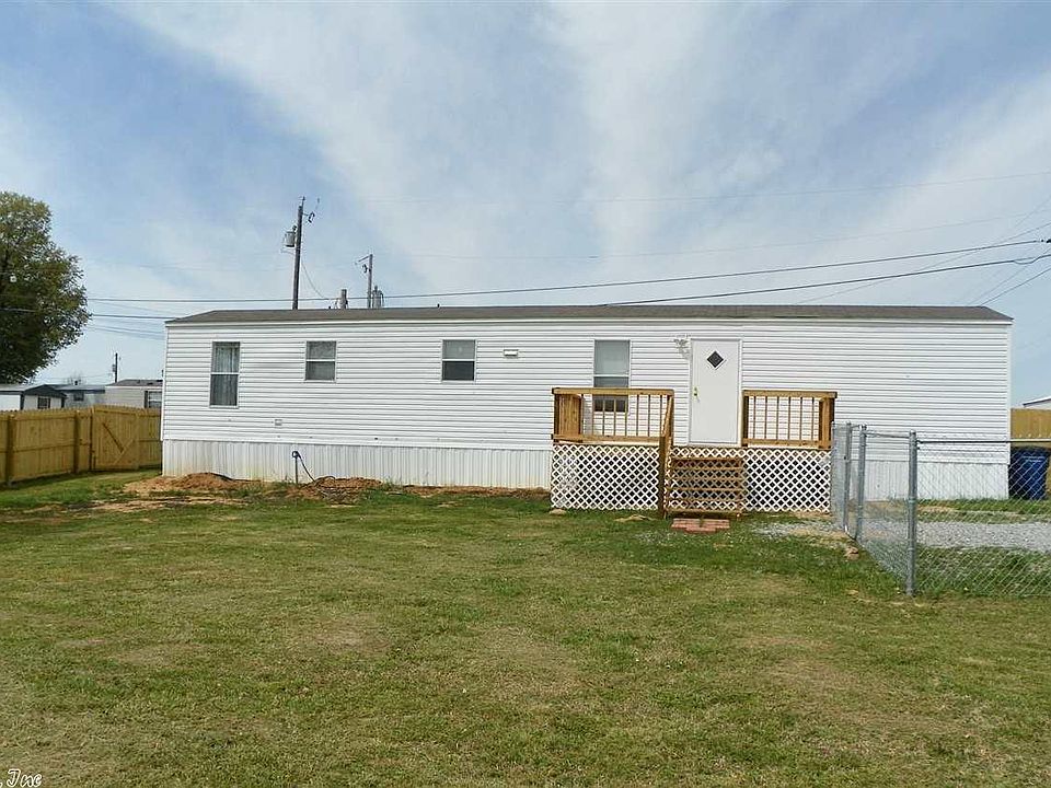 3 bedroom 1 bath split floor plan mobile on 2 lots. Newly completely fenced-partial Privacy fence and partial chain link. All new appliances remain including refrigerator, washer and dryer. Open kitchen/dining/living area. Spacious bath. Hall laundry. Deck on front. Call to see today!!