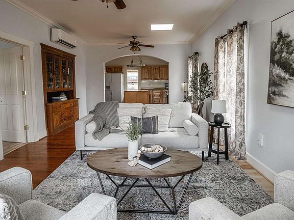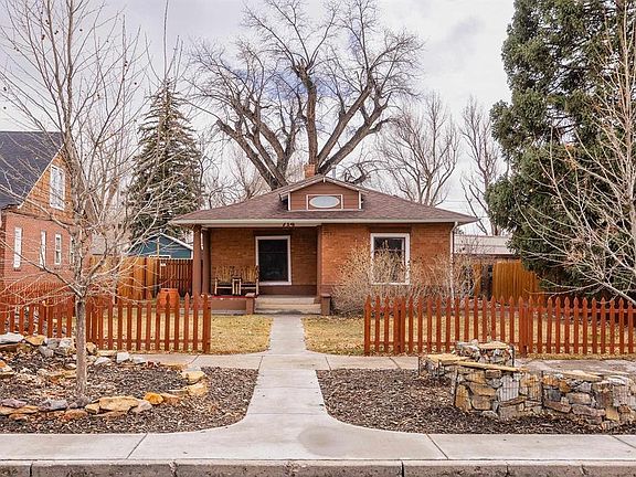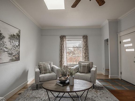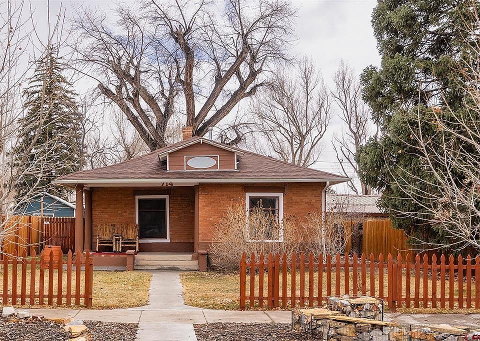 This charming downtown Montrose bungalow warmly welcomes you with appealing landscaping and a timeless covered front porch. Inside, you'll find a functional layout with the living room and an added space for a dining table, with an original built-in feature, new hardwood floors in living room, dining room as well as the larger bedroom. The natural light from the newly installed skylights adds ambiance and a special touch to the surroundings. The kitchen comes complete with island, new stainless steel range/oven, microwave and dishwasher, and a good-sized side by side refrigerator and a convenient hanging pot rack. There is also the perfect breakfast nook space! To the east side of the home you will find the larger main bedroom, which leads into the shared 3/4 bath with walk-in shower, and the second bedroom. The back of this lovely space features a recently remodeled sun porch which is heated/cooled, and there is a laundry room off of that as well with 1/2 bath. The ample light beaming into this space from the private fenced back yard rounds it out beautifully. There is RV parking with plumbing hookup as well! The back yard space features lots of character and function with the trex deck and off-alley carriage-house/shed. This can suit a small vehicle if needed. This property is located in the downtown Montrose "overlay" district, making it the perfect opportunity to add an Accessory Dwelling Unit (ADU) either with the existing carriage house, or adding another space just next to that. This property has the benefit of newer electrical, plumbing, sewer line, roof, and foundation reinforcements. Take a look at this beautiful downtown home and welcome the abundant charm with modern conveniences! There is a mini-split system which provides heat and cooling, and there is a furnace (gas forced air) which backs up the heat as well. Make this well maintained and loved property your happy home today!