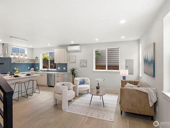 Live just steps from Green Lake, shops, & some of the best restaurants in this beautifully designed brand new construction home. Tucked away with an alley entrance, this energy-efficient gem is filled with natural light, thanks to skylights & large windows that create a bright, airy atmosphere throughout. Enjoy the sleek style of modern finishes, granite countertops, stainless steel appliances, & open layout perfect for comfortable living and entertaining. Both bedrooms are filled with warmth and light—ideal for relaxing after a stroll around the lake. With one designated parking spot & plenty of off-street parking, you’ll always have a place to park. Walk to PCC, local playgrounds, & soak in the vibrant nightlife Green Lake is known for.