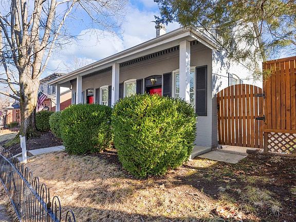 This Historic home (1871) in the heart of downtown St Charles has modern updates. A covered front porch enters to hardwood floors and 9 ft ceilings throughout the main floor. Formal living room with decorative fireplace, crown molding and chair rail leads to dining room and kitchen. Master suite with full bath can be used as 2 bedrooms, nursery, or office. Huge eat-in kitchen spans the back of the original home with granite counter tops, pantry, and stainless appliances. Kitchen skylights add plenty of light. The rear Family room and sun room areas are expansive and add over 450 sq ft to the main level. Upstairs has a bedroom and office space (possible bedroom) with half bath. The back yard is a private oasis with a 20 x 13 brick patio, 23 x 9 deck and 1 car detached garage off the alley. Just minutes from Lindenwood University and walkable to St. Charles Main Street. THIS IS NOT A DUPLEX.