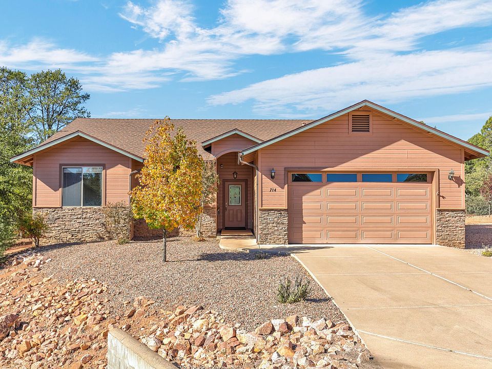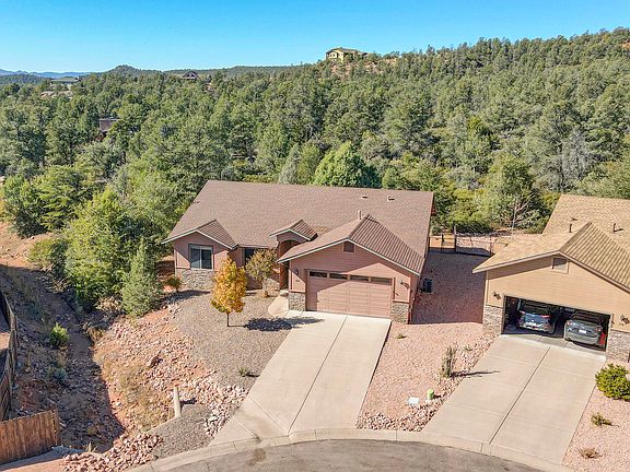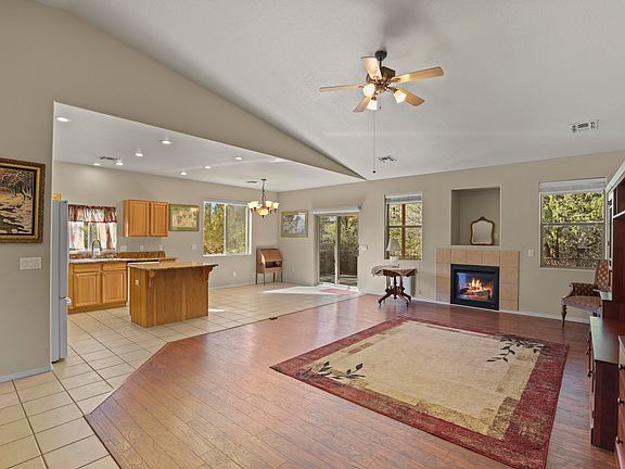 Step into this beautiful single level home in Woodhill Subdivision, nestled into this beautiful cul-de-sac with lots of mature natural trees. Very private backyard which backs to undeveloped land, south side has a large dog turn out which allows for more privacy. This home features an open floor plan which provides a seamless flow between living, dining and kitchen with nine foot ceilings throughout. Living Room boasts with large windows giving it lots of natural lighting, vaulted ceilings, cozy fireplace adds warmth and charm! This is a 3 bedroom, 2 bath, split floor plan, vaulted ceilings, electronic blinds on some of the windows, kitchen has granite counters, ample counter space, farm sink, large island, utility room with washer/dryer, dry sink, lots of shelving large primary with huge walk-in closet, en-suite with dual sinks and walk in tiled shower. Private backyard with covered patio, dog run area on the side! Don't miss out on this one!