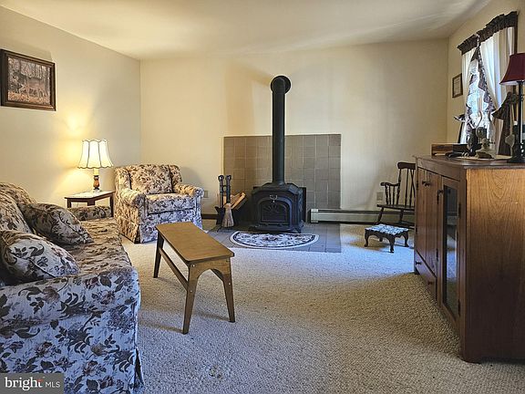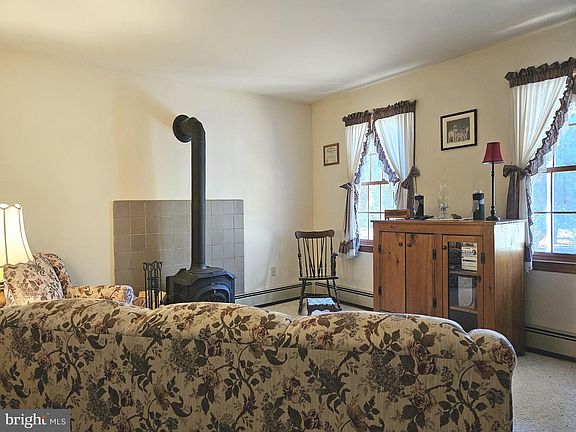 Welcome to this charming Cape Cod-style home nestled in the peaceful countryside, offering a perfect blend of rustic tranquility and modern comfort. Set on a lovely, spacious lot, this home boasts a beautifully landscaped yard, providing plenty of room to relax, garden, or simply enjoy the serene surroundings. Step inside to discover a warm and inviting interior. The eat-in kitchen is perfect for casual meals and family gatherings, while the large dining room offers plenty of space for entertaining guests or hosting holiday dinners. The cozy living room, complete with a wood-burning stove, is ideal for chilly winter nights, where you can curl up with a good book or enjoy the comfort of a crackling fire. The first floor features a versatile flex room that could easily serve as a bedroom, office, or TV/media room – offering flexibility to suit your needs. Whether you work from home or need extra space for hobbies, this room has you covered. Travel to the second floor for two more private bedrooms with plenty of light and closet space. The home also offers a very large full basement with daylight windows, providing the opportunity for future expansion or additional living space if desired. Whether you're looking for a workshop, a home gym, or more, this space has endless potential. Outside, the attractive covered front porch is the perfect spot to enjoy a cup of coffee in the morning or unwind in the evening while taking in the peaceful countryside views. With its inviting charm and endless possibilities, this Cape Cod home is ready to welcome you to a life of comfort and serenity. Property is being sold in its present condition with the exception of the removal of personal property. Some furnishings are available for sale. Inquire with listing agent. Make this part of your home tour soon!