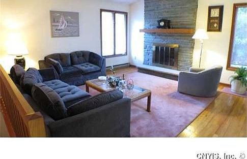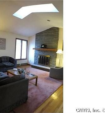 Handsome 3 bedroom 2.5 bath raised ranch located in electric- friendly Solvay. Unique living room features a vaulted ceiling, 2 skylights, stone fireplace and hardwood floors. Sliders to deck allow for easy summer entertaining. Other pluses - - attached 2 car garage, eat-in kitchen, alarm system, all appliances, and finished walkout basement. Can't- beat location is close to Fairmount Fair shopping, restaurants, Westcott Reservoir and major highways. Separate lot behind house approximately 65x80 is available for sale as well.