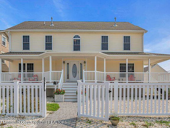 This Shore Colonial features a coveted wrap around front porch with close proximity to the beach, bay and marina. This oversized fenced in property includes a two car detached garage along with loft storage and a paver driveway which holds up to 4 cars. Inside there is abundant space for a large family including 5 bedrooms and 4 full bathrooms. Two primary suites with one on the main floor offering privacy, Work from home in your own private office with a full attic staircase. Oversized attic with great opportunity for additional living space. Mainfloor includes open concept living with large dining room, kitchen and family room with access to deck and yard. Spacious backyard with a cozy pergola, paver patio. Also known as 65 H Street.
