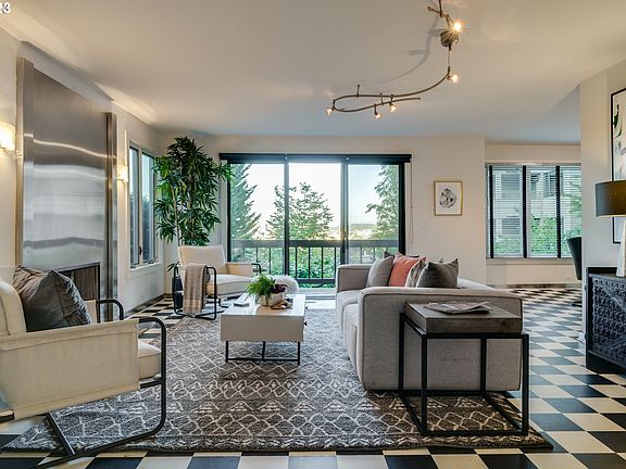 Well maintained 1510 SqFt view condo in this beautiful gated location above Portland's popular Alphabet District/NW 23rd area with great shopping, dining and entertainment. One level with primary bedroom, three closets and private bathroom. Second bedroom and full bath plus separate laundry room/storage. Spacious galley kitchen and eating area with view to living area, plus a wood burning fireplace. Some newly replaced vinyl windows to enjoy the views plus a private covered patio. Condo includes a full one car garage plus an additional covered parking space.