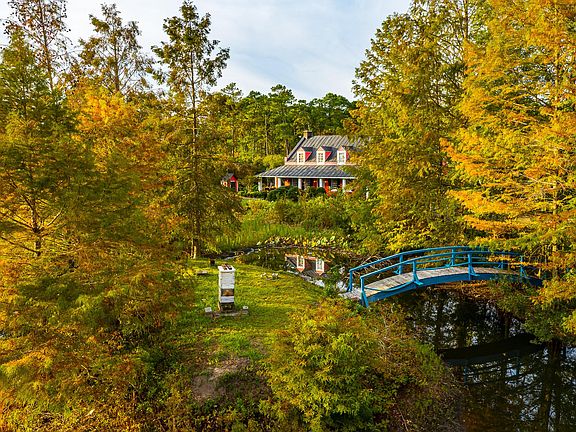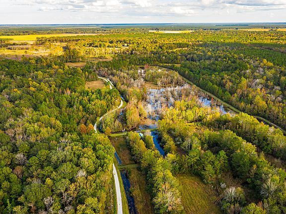 Welcome to Otrento, a beautiful French West Indies style home built in 1989 after the Otranto plantation located outside of Charleston, SC. Situated on over 230 acres ideal for hunting, fishing, birding, farming, and equestrians. The property includes the main house and several other structures including a barn converted into a guest house, crawfish shed, tractor shed, chicken coop, and workshop. What makes this property truly unique are the two impoundments with an active crawfish population that are ideal for attracting varieties of duck, turkey, birds, deer, bears, otters, and the like. Part of the property is low lying wetlands that are also ideal for wildlife. There is also a pond in front of the main house stocked with large mouth bass and bream. The NC state record breaking bream was caught on the property in the early 2000s. Stepping into the main home you will be struck by the stunning Mahogany walls and wide plank hardwood flooring that goes throughout the property. The open concept living area featuring a cozy fireplace and built in shelving is perfect for entertaining. The library has built-in shelving to host your collection of books. You'll enjoy cooking in the well appointed kitchen with high end stainless steel appliances and custom two tone hickory and cherry wood countertops while enjoying the view of the vista through the window. The spacious master suite with walk-in cedar closet is a welcome retreat after a day spent outside. Relax in the soaking tub with a view of the private garden from the window. The additional bedrooms and bathrooms upstairs also feature cedar closets and hardwood floors and offer plenty of space to host guests. The covered porch that surrounds the entire house is perfect for watching the stunning Otrento sunsets and an in ground pool is ideal for cooling off during the warm summer months. The converted barn offers additional lodging with a full bathroom and kitchen. Home also has full house generator.