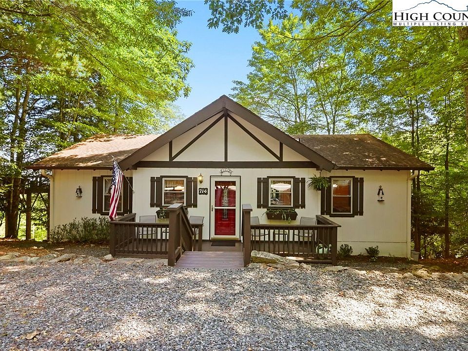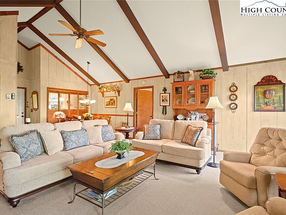 Welcome home to "Serenity Chalet," an adorable 3 BEDROOM - 2 BATH Beech Mountain classic chalet that has been loved by its owners! If you have been looking for a mountain property at an affordable price with VIEWS then "Serenity Chalet" is it! This adorable chalet boasts beautiful northeastern long-range views, providing a picturesque backdrop for every season. The property's level entry (4 steps to entry) and circular driveway enhance convenience and accessibility. Once inside you will discover the open floor plan with soaring vaulted ceilings that create a sense of spaciousness and airiness. From the living area, a floor to ceiling stone gas log fireplace is the center point and the expansive glass doors lead out to the rear deck, providing the perfect setting to soak in the mesmerizing views and enjoy the fresh mountain air. Conveniently situated on a paved road, "Serenity Chalet" offers easy access to both the Beech Mountain Golf Course/Club and Buckeye Lake Recreational Center, allowing for a variety of outdoor activities and leisure pursuits. This property is being offered fully furnished (w/ minor exclusions) and with FULL Beech Mountain Club Membership.