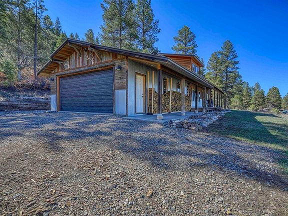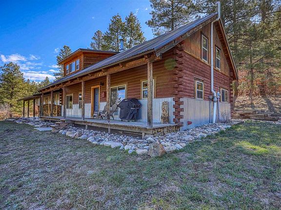 Boasting a complete remodel in 2017, this stunning D-log home epitomizes rustic elegance and modern comfort. Step inside to discover a spacious and inviting interior, where exposed beams and hardwood floors infuse each room with a warm and inviting ambiance. The heart of the home is the living room, where a cozy wood stove beckons on chilly evenings. Picture-perfect mountain views frame the space, offering a serene backdrop for gatherings or moments of quiet reflection. The kitchen is a chef's delight, featuring ample counter and cabinet space, and a walk-in pantry. Retreat to the primary bedroom sanctuary, where a fireplace adds a touch of luxury and romance. Two additional bedrooms provide comfortable accommodations for family and guests alike. One of the guest bedrooms features a fun climbing wall leading to a private nook space, perfect for adventure seekers of all ages. Outside, the enchanting landscape unfolds across 5+ acres, offering endless opportunities for outdoor recreation and relaxation. A charming barn provides the ideal setting for equestrian pursuits or hobby farming, while a heated outdoor water supply ensures year-round convenience. A versatile shed, already connected to electric and septic, offers potential for a studio, workshop, or guest cottage. Professionally landscaped, the grounds showcase the natural beauty of the surrounding area. Located in a private setting, yet conveniently close to town amenities, this idyllic retreat offers the best of both worlds.