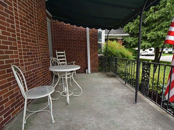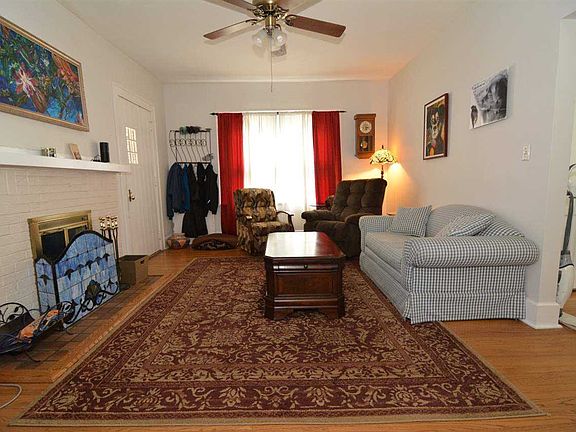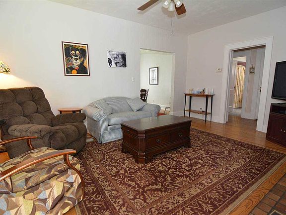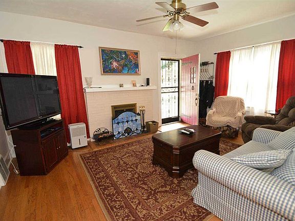 Welcome Home to this charming brick ranch featuring Living Room with hardwood flooring & gas fireplace, Dining Room with crown molding, custom cabinets & hardwood flooring, main bedroom features bay window & hardwood flooring. Second bedroom has built-in desk with shelving & carpet. All appliances in kitchen are included in the sale. Full unfinished basement. Relax on your front porch or on your back yard patio. Home has a 2.5 car detached garage with garage door opener. Backyard is fully fenced. Included in sale: refrigerator, range/oven, microwave, washer, & dryer.