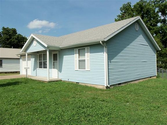 Come see this affordable, well maintained modern home. Open floor plan with spacious kitchen with lots of oak cabinets, refrigerator and stove. Updated light fixtures and three ceiling fans. Large backyard with deck and fenced area for children or pets. Includes good sized rooms, utility room and one car attached garage. Close to Woods Supermarket, Southwest Baptist University, shopping and restaurants.