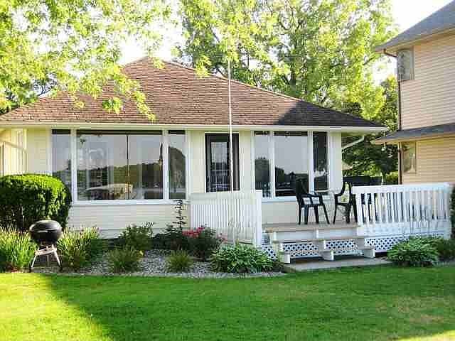 Fabulous Sand Beach with a Great View! This adorable cottage is located on the south shores of Clear Lake. It has many updates and is very nicely decorated! There are ceiling fans in all the bedrooms, living room and porch. Hardwood floors add to the cottage charm. There is a lakeside deck for relaxing and taking in all the lake activity. The lakefront has a new concrete seawall, a gradual sand bottom plus a sandbar. New shingles 2012. All furnishings are negotiable. The cottage is used as a summer rental and has a great rental history. Not included but also available (for an additional $100,000.) is a 50x208 back lot with a 36x28, 4 car det. garage and an opportunity for a recreation room on the second level. The large yard behind the detached garage is great for outdoor activities. The seller has provided an Artists Rendition of a remodel for this existing structure. See Associated Documents for floor plans.