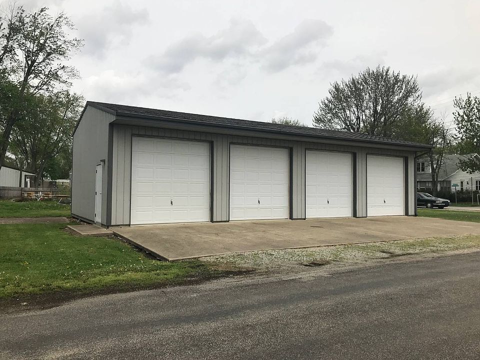 48x116 corner lot with a 24x52 pole building. Gutters, concrete floor, electric, 4 bay, 2 entry doors, no plumbing, no F/A-heat, shingle roof needs replaced (does not leak).