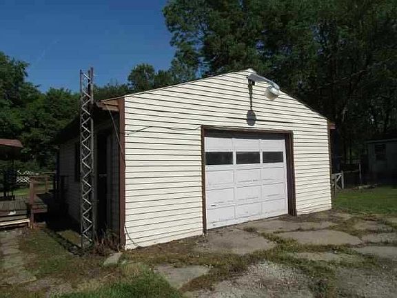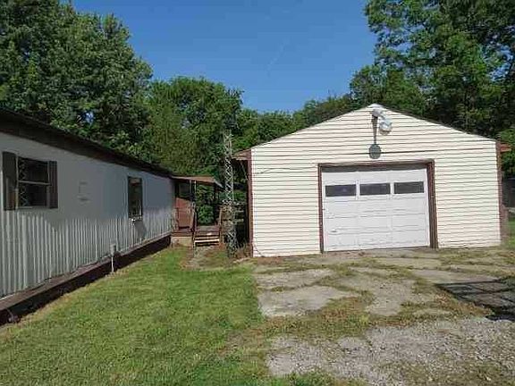 Two bedroom mobile home with two decks and 1.5 car detached garage.