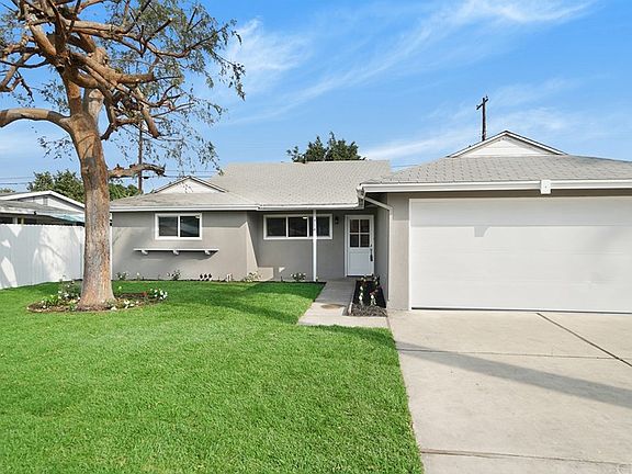BEAUTIFULLY UPGRADED 4 BEDROOM HOME NEAR DISNEYLAND! THIS HOME HAS AMAZING FINISHES, INCLUDING NEW FLOORING THROUGHOUT, NEW INTERIOR AND EXTERIOR PAINT, NEW WINDOWS, NEW DOORS, RECESSED LIGHTING, NEW CARPET IN BEDROOMS, STYLISH FIXTURES, QUARTZ COUNTER TOPS IN THE KITCHEN, LARGE STAINLESS STEEL SINK LOOKING OUT TO THE BACKYARD, AND STAINLESS STEEL APPLIANCES INCLUDED!!! THE BATHROOMS HAVE NEW CUSTOM TILE SHOWERS, NEW VANITIES, NEW TOILETS, AND NEW FLOORING! THERE IS A LARGE ENCLOSED PATIO SPACE OFF THE LIVING ROOM FOR MORE ENTERTAINING AND CENTRAL AC!!! BEAUTIFULLY LANDSCAPED FRONT AND REAR YARDS WITH NEW GRASS, FRUIT TREES, AND SPRINKLER SYSTEM! THIS HOME IS LOCATED NEAR DOWNTOWN DISNEY, THE GARDEN WALK, AND SHOPPING! THIS IS A MUST SEE HOME!!!
