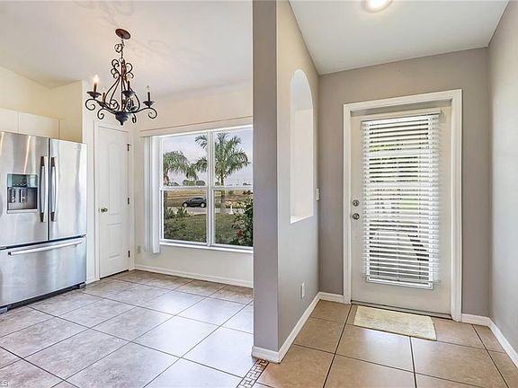 3 bedroom, 2 bath, 2 car garage with a 5' chain link fenced back yard for privacy. Beautifully done inside with 20 inch porcelain tile throughout. This home feels much bigger than it's square footage. Freshly painted outside. The under truss screened lanai leads to an outdoor wood deck for BBQ's in the back yard with a gorgeous Live Oak, & several Royal & Foxtail Palms. The garage has custom made upper shelves that add storage without sacrificing floor space. Move in ready with window treatments, upgraded ceiling fan/lights that can be found throughout the home.