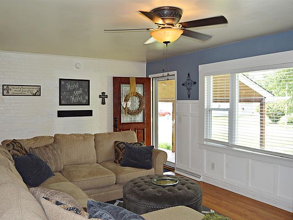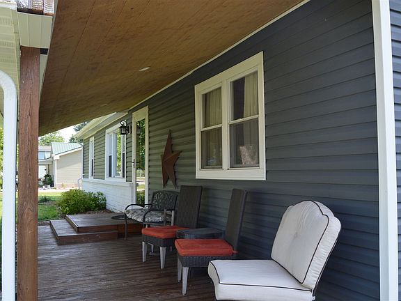 This 4 bedroom home on 4 lots has many updates including 2 updated full baths, large kitchen island with cooktop, HVAC system, water heater, roof, gutters, downspouts, vinyl siding, windows, and much more. Also includes front and rear covered porches and 2-car over sized detached garage with electricity.
