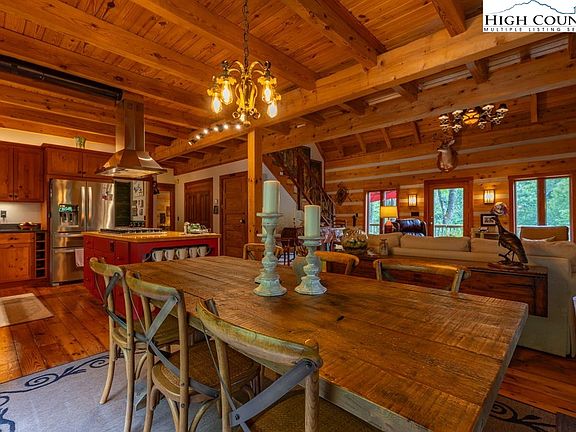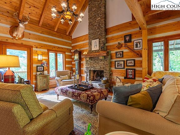 Take the road less traveled to Solitude! Live a lifestyle most only dream of, on your 10 acre estate where the predominate sounds are those of birds singing, leaves rustling & the noisy Buckeye Creek. Ah, you have found what you have been searching for! Solitude is a large rustic cabin filled with artisitic touches. Stepping onto the deck you realize how nice it would be to sit there on a rainy afternoon listening to the sounds of the rain as each drop strikes your metal roof. Upon entering Solitude you are greeted with the open concept Great Room with soaring rock fireplace, dining area with plenty of entertaining space for firends & families. The open kitchen features an island with a gas cooktop & plenty of prep space. As you begin to take in the kitchen, you start to exhale realizing you truly have found Solitude, now to continue exploring. As you leave the kitchen & start down the hallway to your left you see the buntlers pantry and mud room. The double door closet now housing a large pantry also has washer/dryer hook ups for main level living. The large light filled primary suite beckons you down the hall; upon entering the bedroom you realize you could drift to sleep & wake to the sounds of the creek splashing below. Now to investiagte upstairs, you which showcases a large bright loft, next you're into a spacious guest bedroom with built in bunk beds & bed tucked into an alcove. Continuing past a shared bath is another guest room with a king size bed. The exploration continues down stairs. The over sized lower level offers a family room with fireplace, a pool table sized game area & built in bed beneath the steps & full bath. The 2nd laundry, tool room & another sleeping space are all ready to be finished. Outside is another deck & steps leading to Buckeye Creek where a lovely bridge invites you to stand & trout fish a while or cross it for a hike. The home with a generator is furnished, including the Kabota. Stickered or boxed items do not convey.