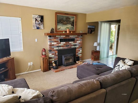 Charming 2 bedroom 1 bath home. All electric home features tile entry, newer carpeting & interior painted with custom modern colors. Seller installed new electric plugs through out and new closet doors in bedrooms. Updated ceiling fans & new roof 1 year ago.Kitchen has tile flooring & counters with plenty of counter space & cabinets. Living room has a fireplace with insert for those cool evenings & the evaporative cooler has multi room ducting for those warm days! Easily maintained yard with some drought resistant plants & gravel. Back yard is fenced with some planters for gardens. Covered patio with privacy netting in front with mature plants & water fall. Great area for entertaining & enjoying the views of the surrounding mountains & a peek a boo view of the lake. On the lower part of the property is a great area for RV or boat parking.
