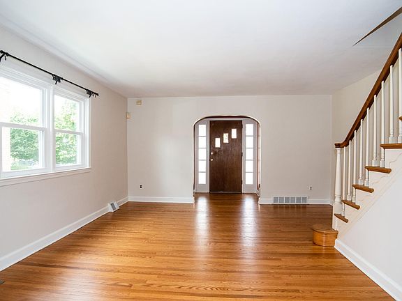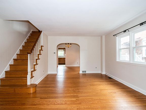 Your new home awaits! A 3-bedroom, 1.5 bath twin: just renovated and ready for new occupants. This spacious home has everything on your list: refinished hardwood floors, brand-new windows throughout, central heat and air conditioning, and original vintage charm combined with brand new appliances and updated fixtures. You will love the layout too! The front walkway leads to a covered porch and main entry. Step through the front door into the foyer with large coat closet to your left and convenient first floor powder room to your right. Through the arched entry and you will be in the living room with gleaming hardwood floors and fresh neutral paint throughout. Keep going to the formal dining room, with chandelier on a dimmer switch and contrasting bold glamorous accent wall. The final room on the first floor is the kitchen, with retro charm, wooden cabinets and all new flooring and appliances. There is room to eat in and even add storage. Up the staircase you will find a wide landing, with space for a table or desk and a hallway leading to all 3 bedrooms plus the full tiled bathroom. The largest bedroom, at the front of the house, features dual closets. The hall to the full bath also features a large linen closet so there will be a place to store everything you need. The updated bathroom features modern wallpaper, a brand-new toilet and tile floor, as well as the original vintage tiles. The middle bedroom has built-in shelving you can configure as you like, and the third bedroom is generously sized and serene. The basement of the home has laundry, and a walk-out exit to the rear of the home with a private one-car parking spot as well as a one-car garage to store all your toys and outdoor gear. It's a lovely home in a great location, close to stores and schools as well as major highways and public transit. No smoking. Tenant pays all utilities. Landlord pays for grass cutting. Application requirements: at least 3x the monthly rent in gross monthly income, credit score 650 or higher, give personal references. All adults must complete the application.