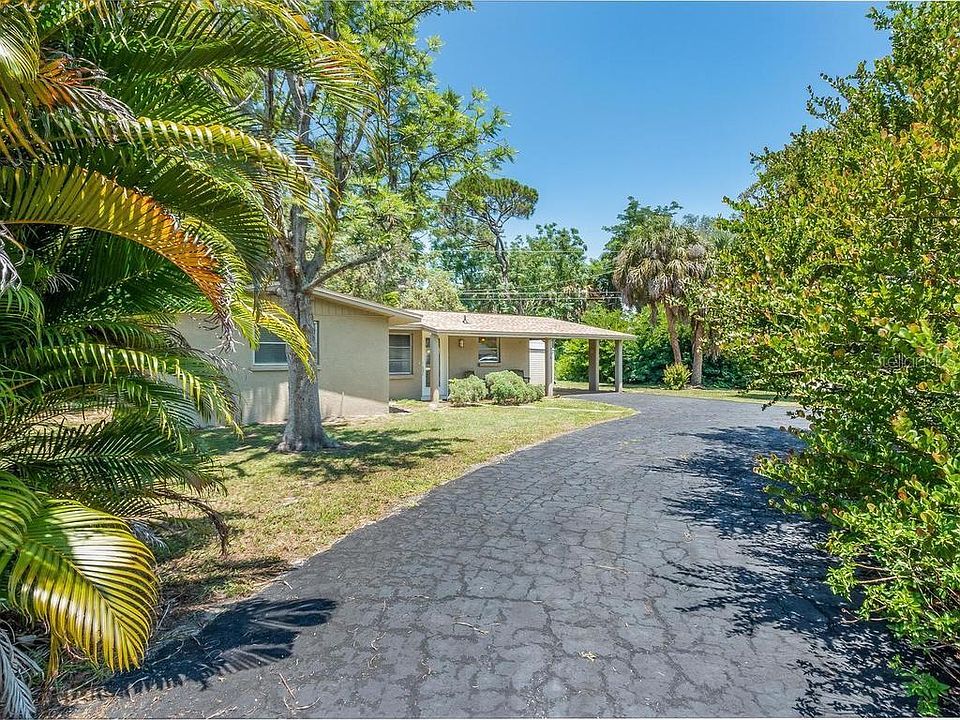 A sought-after mid-century modern ranch with beautiful terrazzo floors. You will love the re-polished terrazzo floors throughout, original tiles in both baths and large slanted screened back lanai that is in the middle of a Tarzan-like jungle setting. The current owner, remodeled & opened up the kitchen with newer cabinets & Silestone counters a few years ago giving the whole interior an open, airy feel. There have been many recent big ticket improvements as-well. including a new roof in Nov. of 2018, new well in April of 2019. The whole A.C was new in May of 2016 with a new compressor in May 2019. This is truly a one-of-a-kind special home in how it is situated to bring the beautiful, lush outdoors inside for a totally relaxing nature experience every day. The owner is selling this home at 714 Treasure Rd. which is on a corner 100x100 lot. He is also including the adjacent 80x100 heavily treed lot on Conrad Rd. These must be sold together. So the Listing price is for an 180 x 100 corner lot of 18,000 Sq. Ft. Buyers may be able to build on this other lot with a well variance. Check w/ Sarasota County Environmental Services for details and permitting through FL State Dept of Env. Protection. This home is only a few short blocks to the S. Venice Ferry and boat launch area and the S. Venice Civic Association Community Center and tennis courts are just around the corner. Membership for annual Beach Ferry Pass; $130. Annual boat ramp fee; $90. S.V. Civic Assoc fee $60 for clubhouse, tennis and bball.