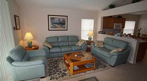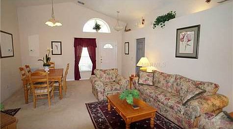Located in a Great Golf Community this light and airy 3 bed and 2 bath home comes with a large pool and spacious screened in deck! The open floor plan features formal living and dining area adjacent to the eat in kitchen which overlooks the family room. Enjoy entertaining poolside on the lanai with a beautiful large hedge at the back of the property that serves as a tropical backdrop and provides extra privacy! This home is being offered fully furnished! The community features tennis courts, community pool and a playground. Ideally situated for area attractions, shopping, golf and theme parks!