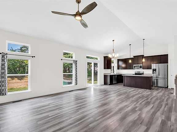 2 YR OLD custom-built home nestled on a culdesac lot backing to trees. Enjoy your morning coffee on the covered front porch. Beautiful brick & vinyl elevation, architectural shingles, hallmark columns, landscaping, & OVERSIZED 3 CAR GARAGE! Spacious & open layout w/ a soaring vault in the Great Room, Dining Room & Kitchen. The Kitchen offers granite counters, large island, stainless appliances (refrigerator to stay), smooth top range, 42" soft close cabinets w/ hardware & a pantry. The Primary Suite offers a vaulted ceiling, large WIC w/ double shelving, shower with seat, & adult height double vanities. There are 2 other nice sized Bedrooms, a hall Bath & MFL. Other great features: 9’ ceilings, plank flooring, transom windows, new carpet on staircase, iron spindles, ceiling fans, cat 6 wiring, rough in LL, 50-gal water heater, low e windows, lever handles, upgraded insulation, & PestShield system. You'll love entertaining in the fenced yard, there's a large patio for BBQs. Welcome Home