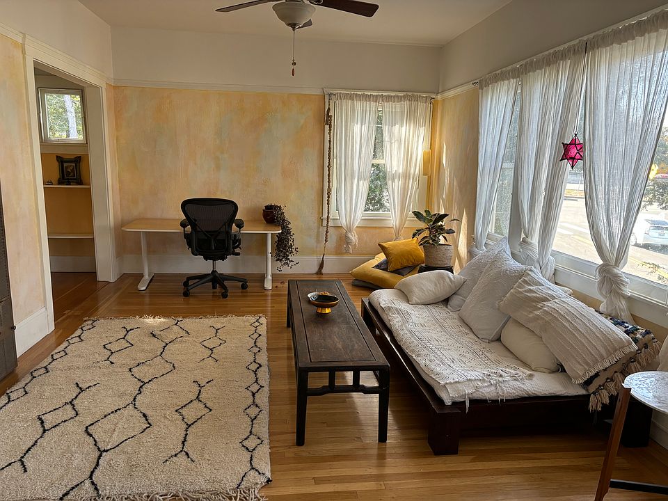 August SUBLET. An artfully furnished , light filled and spacious Grand Lake 1 bedroom apartment is available to sublet for the month of August. It's walking distance to some of Oakland's great restaurants, the Grand Lake Theatre, the Saturday farmers market and easy transportation around Oakland and to SF. The Grand Lake area is a friendly neighborhood and of course has the wonderful and walkable Lake Merritt. Organic Bed (Double) and Bedding and Linens in bedroom and bath Easy access to Dining, Entertainment / Hospitals / Transportation Its a a very calm space to live as it is uncluttered and painted with relaxing colors. Non-toxic paint and cleaning supplies Second Floor Big open rooms with loads of closet space Edwardian Fourplex