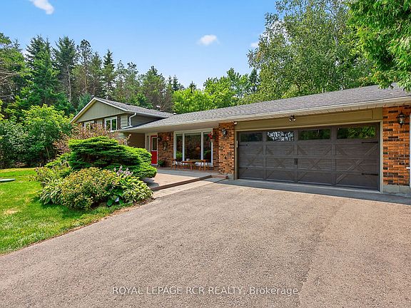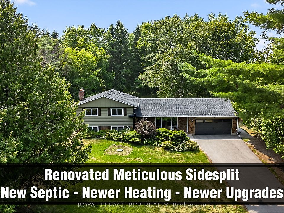 Charming, renovated ($230,000+upgrades) meticulously maintained, 4-level sidesplit country retreat in west Uxbridge with long private driveway nestled on a private 0.65-acre lot surrounded by mature trees. This 3+1 bedroom, spacious 4-level Side Split offers 2,620sf of sparkling living space (1,312 sf above grade + 1,406sf. lower level/basement) and enjoys western views of rolling hills, lush forests, and the serene countryside. It is conveniently located in breathtaking west Uxbridge that is just minutes from Mill Run Golf Course, the Town of Uxbridge, and the Town of Newmarket offering easy access to Davis Drive, Regional Road 8, and Hwy 404. Experience the charming curb appeal that is enhanced by professional landscaping, covered front porch and new garage door. Enter into the bright open concept living room/dining room with hardwood floors and crown mouldings. The modern kitchen presents quartz countertops, centre-island, two sinks, Built-in stainless steel appliances, backsplash, pantry and walk-out to a covered back deck. The primary bedroom with hardwood flooring offers a double closet and renovated 4-piece ensuite. The entertaining-size family room showcases large above grade windows, designer brick wall, gas fireplace, pot lights, wainscotting and 2-piece washroom. The finished basement includes recreation room or bedroom, laminate flooring, pot lights, utility room, storage area and a walk-up to the garage. Relax in the private backyard with a covered back deck, gardens, mature trees and stunning sunset natural views of rolling hills.