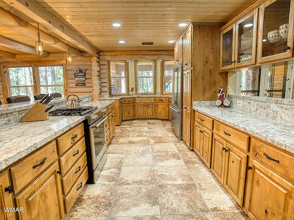 BEAUTIFUL, FULL LOG HOME located in the Pinetop Country Club! With the Fairway in BOTH Front and Back, this incredible 4 Bed / with 2 full baths and 2 half baths. Cabin sits on an extra large, .67 Lot! Amaze your friends and family; updated with unique - sanded and re-chinked logs, fabulous kitchen with stainless steel appliances and granite counters, with plenty of counter space to cook and cabinetry for storage. There's also a separate Family/game room to entertain or unwind and a back room that can be used for a workout room, game room, play room, office or another bedroom! The home has views of the lake, fountain and fairway, and you can enjoy them from two different decks! Back deck redone w/ new railing. iTruly one of the BEST lots in the Pinetop Country Club. Click 'more' important This TRULY amazing cabin is a MUST see.