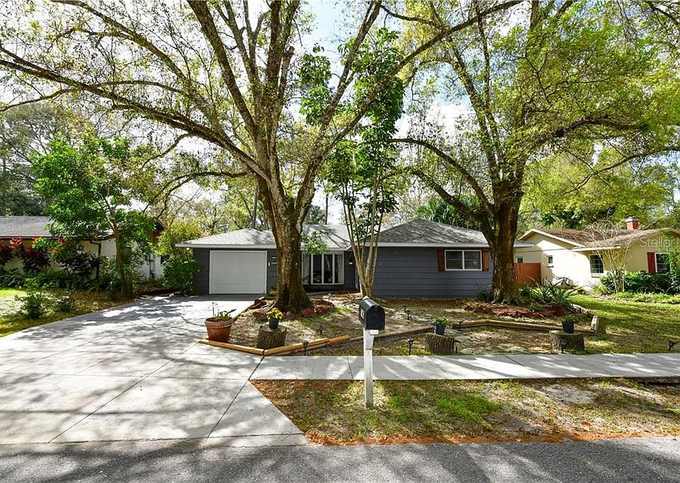 Nestled amidst the tall pines and majestic oaks, you will find this two-bedroom, two-bath ranch style home in Lake Sarasota. Enjoy the opportunity to be warmed by the wood-burning fireplace this winter! The kitchen has new recessed lighting, stainless steel appliances, and is very spacious with ample cabinetry and counter space to prep and cook meals. The master bedroom is enormous, make sure to notice the additional dressing space. The screened-in lanai is open and airy, and the backyard features a brick paver fire pit and patio surrounded by beautiful green foliage and mature trees. You will love the indoor laundry room with sink and additional storage. This is a very well cared for and maintained home, with a brand new roof in 2019. It's priced to sell and will not last long on the market. Lake Sarasota is minutes to I-75, Sarasota/Manatee Airport, UTC Mall, and our world-famous beaches.