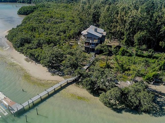 NOW, THIS IS TRUE ISLAND COASTAL LIVING WITH DOCK AND BOAT LIFT! No view like this anywhere else! Of the 13 lots, this lot is situated on 1.84 acres of the total 38 acres on JEWFISH KEY. This 3 Bedroom / 2.5 Bath home is located across from Longboat Key with views of the Intracoastal Waterway and Sarasota Bay from most of the rooms in the house! Wake up, grab your coffee and step onto your 180 degree upper wraparound deck to watch breathtaking sunrises! This Island home has amazing views of the water, wildlife and sailboats. In the evening grab a glass of wine and head outside to your private 200 feet beach for world renowned sunsets for which this area is known for. Inside this three-story home, you will find vaulted ceilings, a floating staircase, a beautiful fireplace and a family room with lots of light. Accessible by a 5 minute boat ride or a water taxi, this is part of the town of Longboat Key and located in Manatee County. You are truly in the center of the area's best boating, fishing, jet skiing and kayaking waters. Don't forget to bring your fishing poles, because you will be in the heart of the world famous fishing action! Don't let this piece of island paradise slip away! After all, it's always fun to go to the beach but even more fun when you own the beach! Click the 2 videos for 1 - 3D WALK-THROUGH and 2 - Drone Video. Call your agent today to set up a showing.