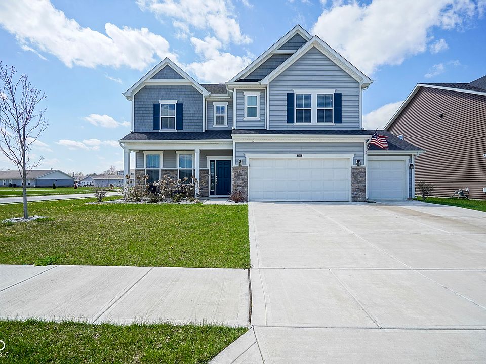Welcome home to this nearly new 5-bedroom, 3-full-bath home, constructed in 2021 and offering 3,200 square feet of thoughtfully designed living space. Set on a spacious corner lot with a 3-car garage, this property combines modern comfort with plenty of room to enjoy. Step inside to a chef's kitchen that features a large island, upgraded ventilation, stainless steel appliances, and a convenient butler's pantry. Whether you're enjoying your morning coffee in the sunny breakfast area or hosting in the formal dining room, this space delivers. The kitchen flows seamlessly into a generous open-concept living room, ideal for relaxing or entertaining. A versatile bedroom on the main level with a full bath just outside works perfectly as an office, guest room, or in-law suite. Upstairs, a roomy loft offers flexible space for a family room or study, alongside four additional bedrooms. The primary suite stands out with its trayed ceiling, ensuite bath with double vanity, and a huge walk-in closet. Outside, the nice sized corner lot provides plenty of room for outdoor activities and is complemented by the practicality of a 3-car garage. Built in 2021, this home offers contemporary finishes and efficiency in a prime Indianapolis location. Move-in ready, pristine and brimming with upgrades, this property won't stay available long. Schedule a visit today! All furnishing are available for purchase as well.