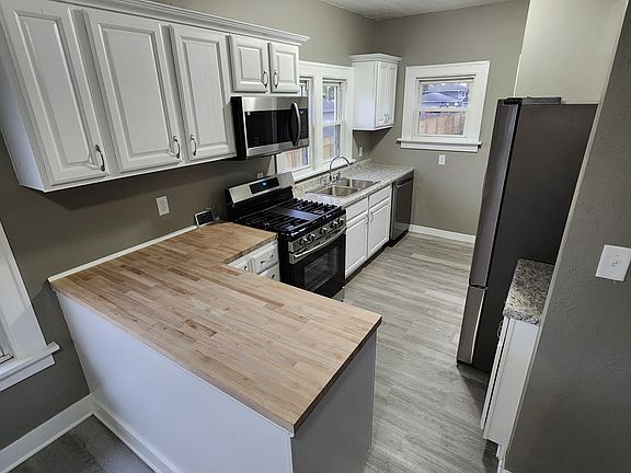 This 3 bed, 1 bathroom house is fully renovated. The bathroom has been renovated. The kitchen has remodeled with new appliances. The house is freshly painted, and new flooring and lighting have been installed throughout. The house also includes a basement with a laundry area with a new washer and dryer.