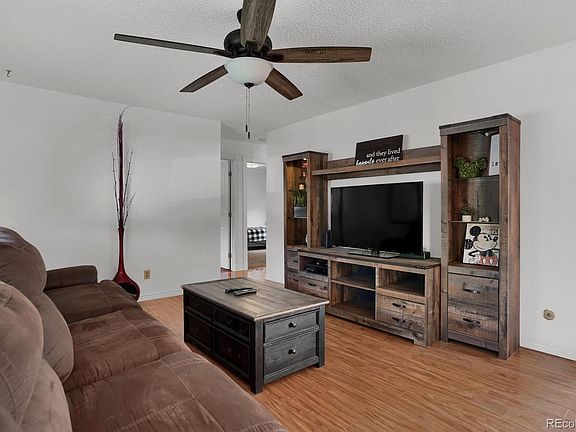Drive a little, save a LOT, easy access to I-25 and military bases. Come home to this clean, move-in ready 4 bed, 2 bath home sitting on a privacy fenced 1/4 acre lot in a quiet cul-de-sac. Just behind the fence you will find a great entertaining patio, lots of big shade trees and an oversized double garage. Once inside the home, you will find beautiful laminate flooring throughout the living and dining rooms. The slider opens to a gracious sized wood deck perfect for evening conversations. The kitchen features stainless appliances (gas stove, refrigerator, dishwasher), newer countertops and cabinets, tile flooring and a huge pantry. Natural light abounds on both levels of this home, from the large bay window in the living room to the daylight level windows in the lower. Generous sized main bedroom (2 double closets) along with full bath and second bedroom finish up this level. The single garage was converted to additional living space to use as you wish (currently used as an additional family room). Welcome to your entertaining dream - this enormous family room features gorgeous brick accented wood burning fireplace, third bedroom, 3/4 bath, laundry room and a bonus non-conforming bedroom (currently used as a walk-in closet) - a simple movement of a door and this is a legal 4th bedroom. Still need a reason to see this house? Check out the 1/4 acre privacy fenced backyard with mature trees, wood deck and concrete patio, ready for entertaining and don't forget the oversized detached two car garage.arage is easily accessible from the backyard for additional storage.