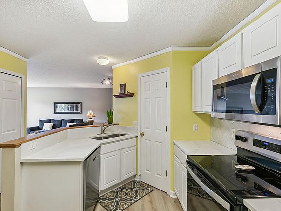 Meticulously kept townhome is beautifully finished. Beautiful luxury vinyl flooring on the main floor (24) flows from the living room to the eat-in kitchen. Spacious living room overlooks the large private patio, optional dining area off living room. Bright & cheerful eat-in kitchen boasts of new SS appliances (24), new Quartz countertops (24) and tiled backsplash (24), fresh paint, updated white cabinets, new sink & faucet, walk-in pantry, crown molding & plenty of table space. Updated main half bath includes new sink & vanity, mirror, light fixture, paint & wainscot. Tranquil primary bedroom has vaulted ceiling, huge walk-in closet & pass-through full bath. Fantastic sunroom off the bedroom offers great space for a home office, den, or baby nursery. Secondary bedroom is spacious, ready for your hobbies, convenient laundry room with washer & dryer (21) plus storage shelves. New water heater (23), furnace/AC inspected & certified (24). This home shines inside and out! Welcome home!