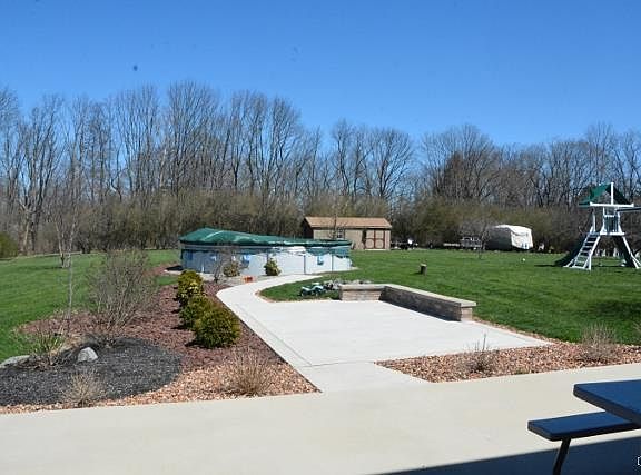 - Exterior features: Pool, Porch, Patio, Shed