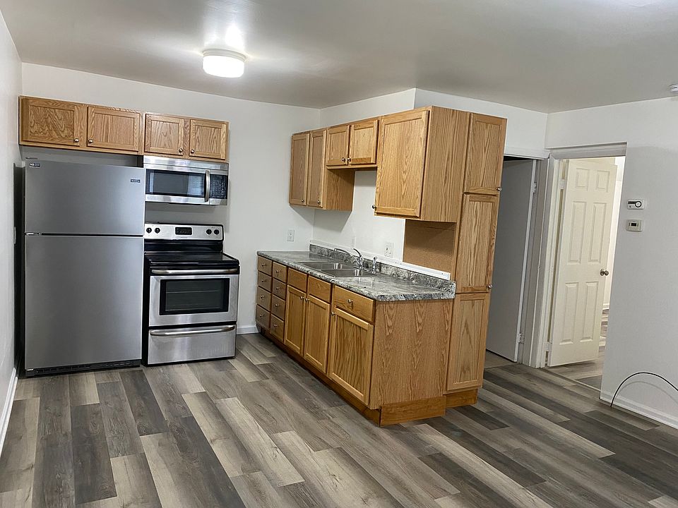 Lower 2 bedroom apartment located in a 8 unit building, very quiet street, just one mile away from Metro Airport, Amazon, and close to bus stop. No Smoking. One cat allowed, No dogs, Good credit and application required. Must have a 3x income, good rental history. Please note that there is no on-site laundry. $1050 Month + Utilities (Gas & Electric). $1575 Security Deposit. Included are water, garbage pickup, yard care, snow removal. Must call first before any showings are scheduled. Park right next to your Apartment. Stainless Steel Refrigerator and Stove Gas stove Over the Range Microwave Garbage Disposal Ceiling Fan Remodeled bathroom with Tub and Shower Central A/C ! Good Windows, Doors, Well insulated to keep utilities bills low. No Dogs $1050 Month + Utilities (Gas & Electric). $1575 Security Deposit. Included are water, yard care, snow removal and garbage.