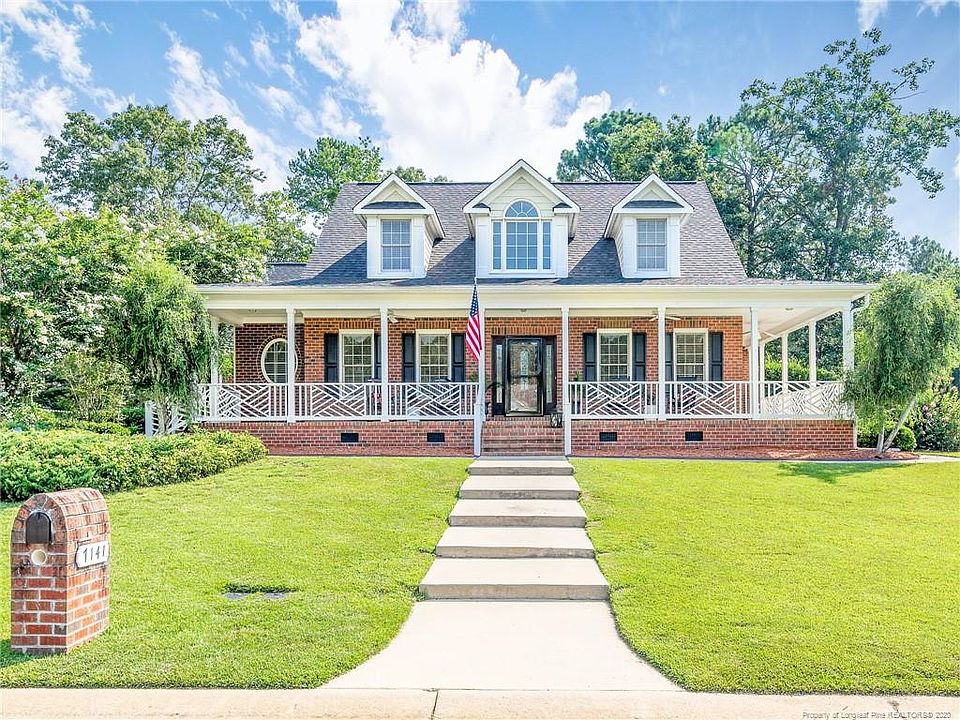 Fantastic 2 -story brick home with wrap around porch in the exclusive Gates Four neighborhood. New roof, new carpet, and freshly painted interior all completed 7/2020. This GEM is move-in ready with beautiful hardwood floors in the great rm, kitchen and dining room. The kitchen has a large walk-in pantry which provides plenty of storage. The main floor master bedroom has 2 large WIC. Master bath has dual vanity sinks, large jacuzzi tub and separate shower. Upstairs has 2 spacious guest bedrooms, a full bath, and a large bonus room. Outside has a large fire pit thatâs perfect for entertaining and roasting marshmallows. Irrigation system keeps the yard green. Side entry 2 car garage affords ample parking. Desired neighborhood in the Jack Britt school district with a 24 hour gated golf community, club house, pool, tennis courts & walking trails. WELCOME HOME!