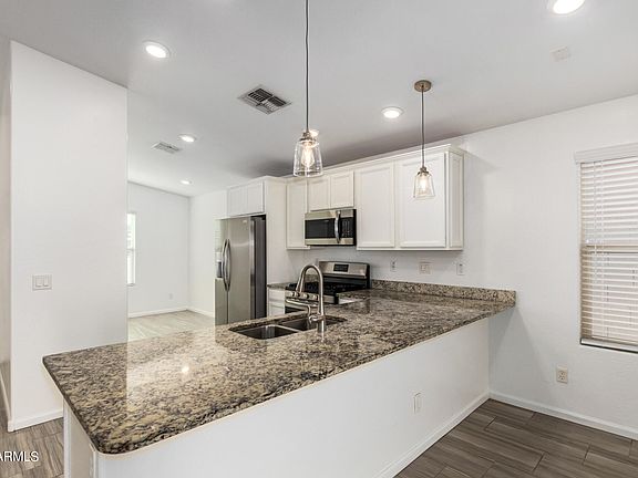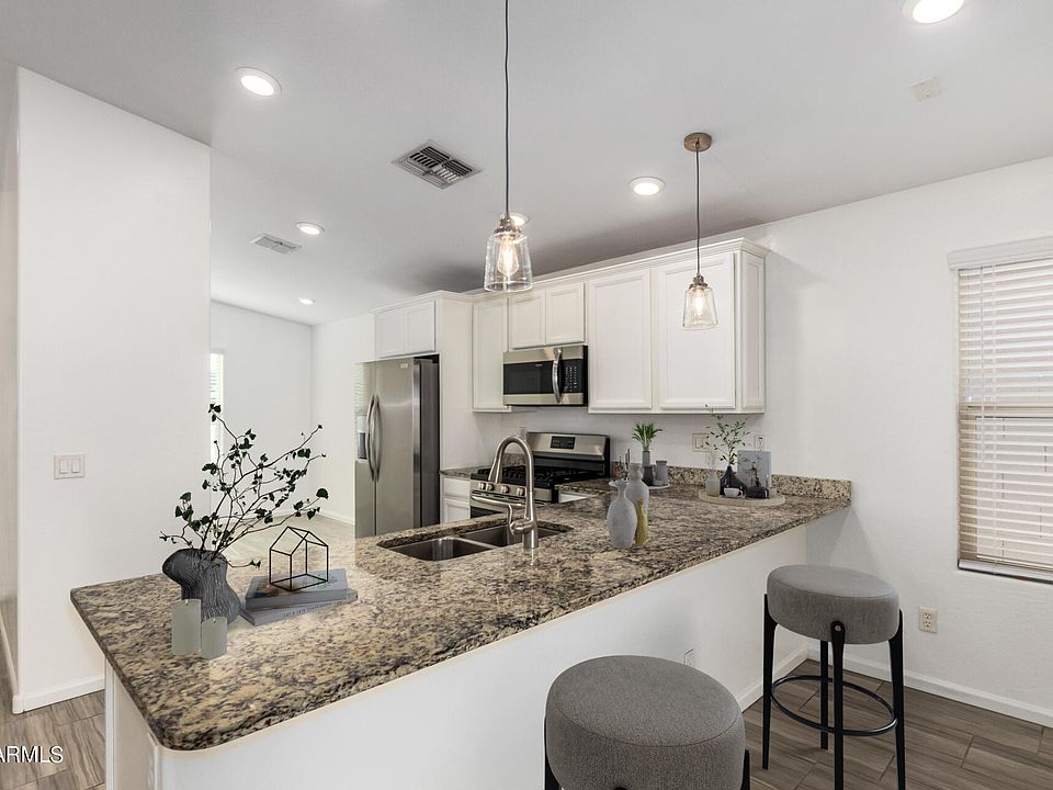 ASSUMABLE 2.75% loan for qualified VA buyer! Your new home is here! Beautiful 3 bed, 2 bath gem in the Marbella Ranch Community! The interior offers an ample living room for entertaining, wood-like tile flooring, vaulted ceilings, recessed lighting, and neutral paint. This home has an immaculate eat-in kitchen showcasing stainless steel appliances, granite counters, a pantry, white cabinetry, and a breakfast bar. The main bedroom is split for extra privacy and boasts a walk-in closet and full bathroom. All appliances included! Additional features include a tankless water heater and a gas stub in the backyard for your built-in BBQ.The serene backyard has a covered patio, artificial turf, and a paver patio for a gazebo, BBQ, above-ground spa, you name it. This property is ready to go!